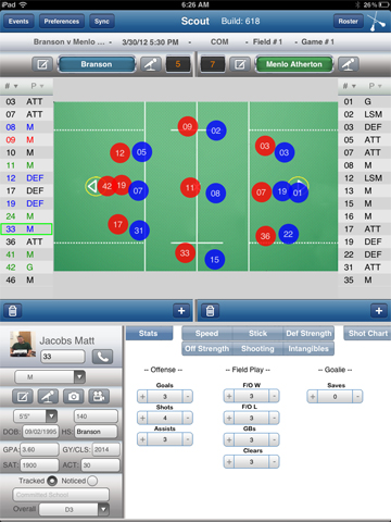 Lacrosse Scout enables coaches to: