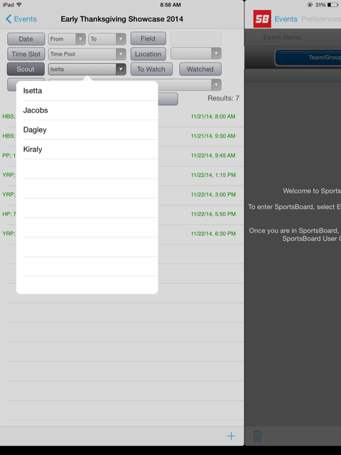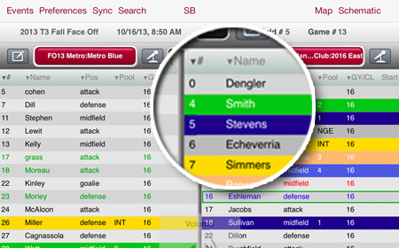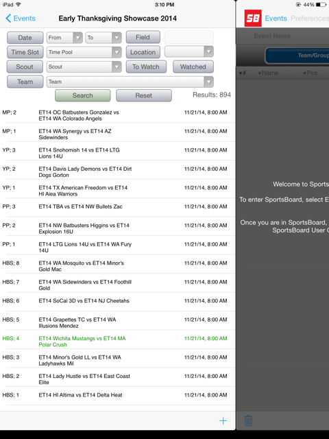 Download SportsBoard Chameleon (iPad) or SB Coach (iPhone) from iTunes and then sync the App with your account. After the sync completes, you will see games highlighted in green.