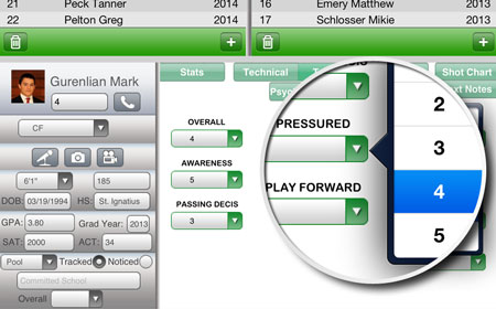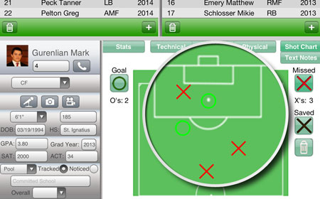 Flag potential recruits as noticed (green) or tracked (blue) and view players who are already committed (red) so you don't waste time watching them