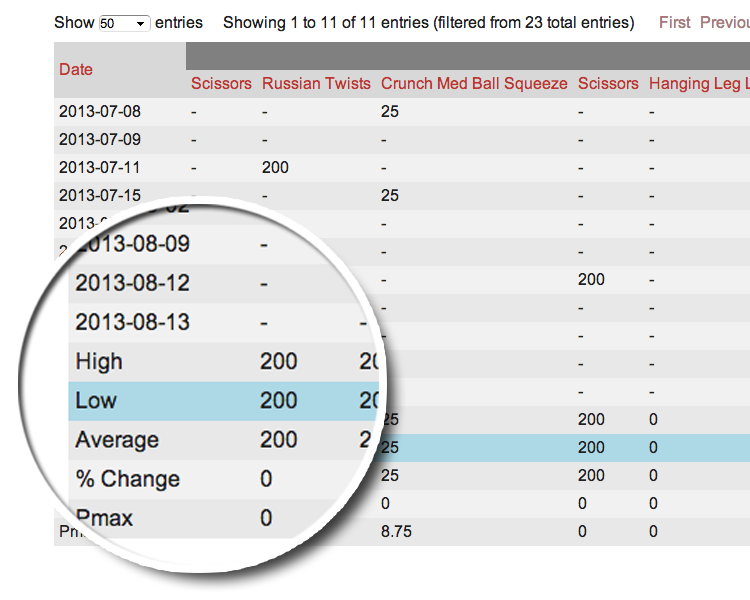 4. Enter how many sets/reps of each exercise they do and their max weight or best time.